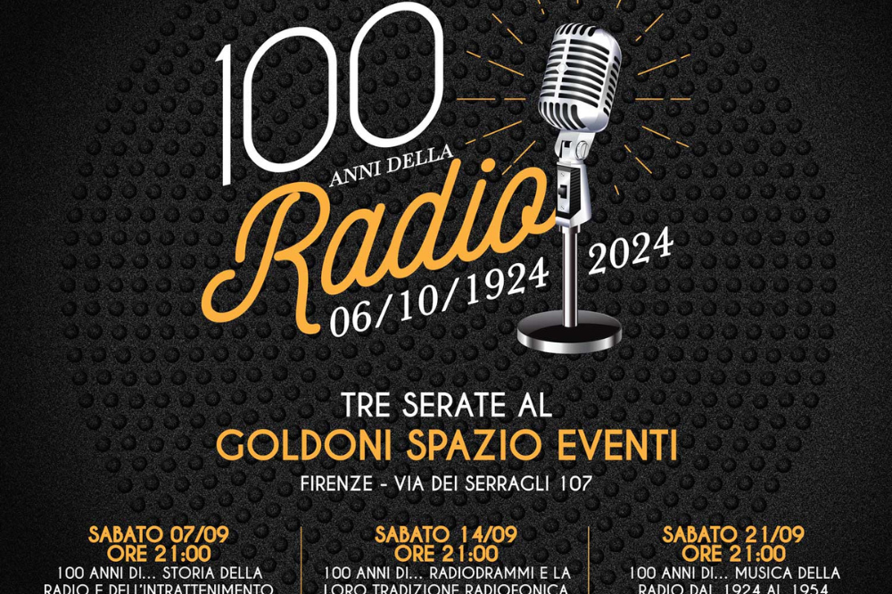Arriva la seconda serata del progetto “100 anni della Radio” che si terrà il 14 settembre presso il Goldoni Spazio Eventi di Via dei Serragli, con lo spettacolo “100 anni di… RADIODRAMMI e la loro tradizione radiofonica” a cura di Rodolfo Sacchettini.