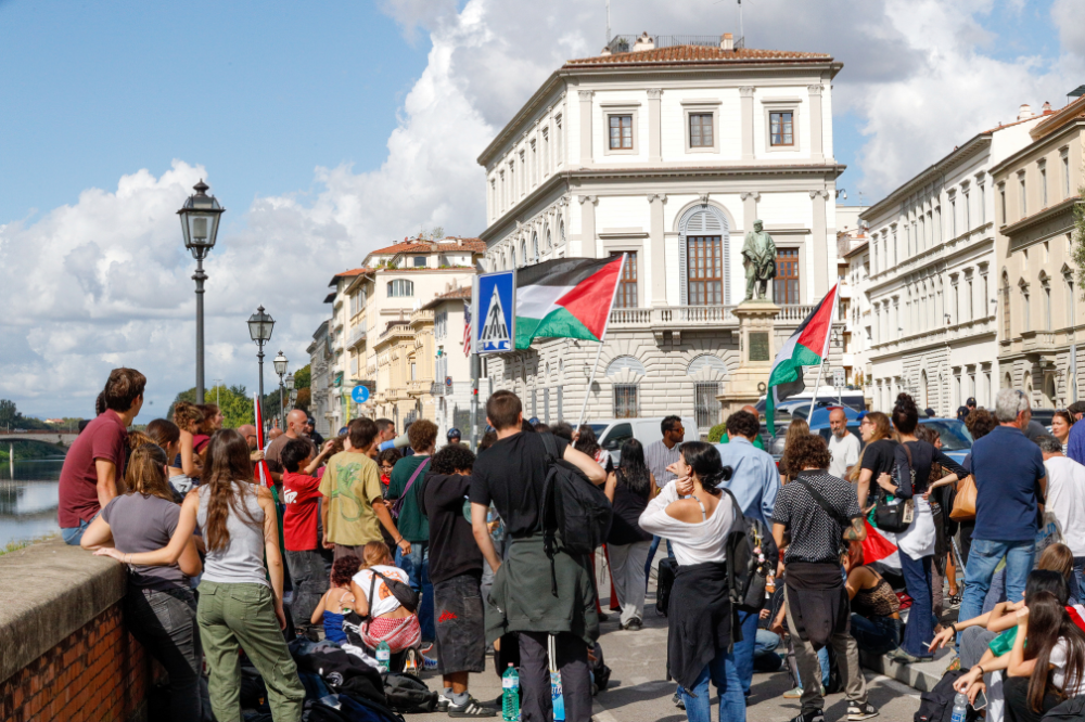 In piazza bandiere palestinesi, dei sindacati di base e i tamburi del Collettivo di fabbrica ex Gkn. "Palestina libera" e "Stop genocide" e "Fuori Israele dalle università", gli slogan della piazza, da dove è stata anche rilanciata la mobilitazione di venerdì prossimo in piazza Indipendenza, a poche centinaia di metri da piazza San Lorenzo, sede del comizio conclusivo del centrodestra per le regionali del 12 e 13 ottobre, a cui parteciperà la premier Giorgia Meloni insieme ai due vice, Matteo Salvini e Antonio Tajani.