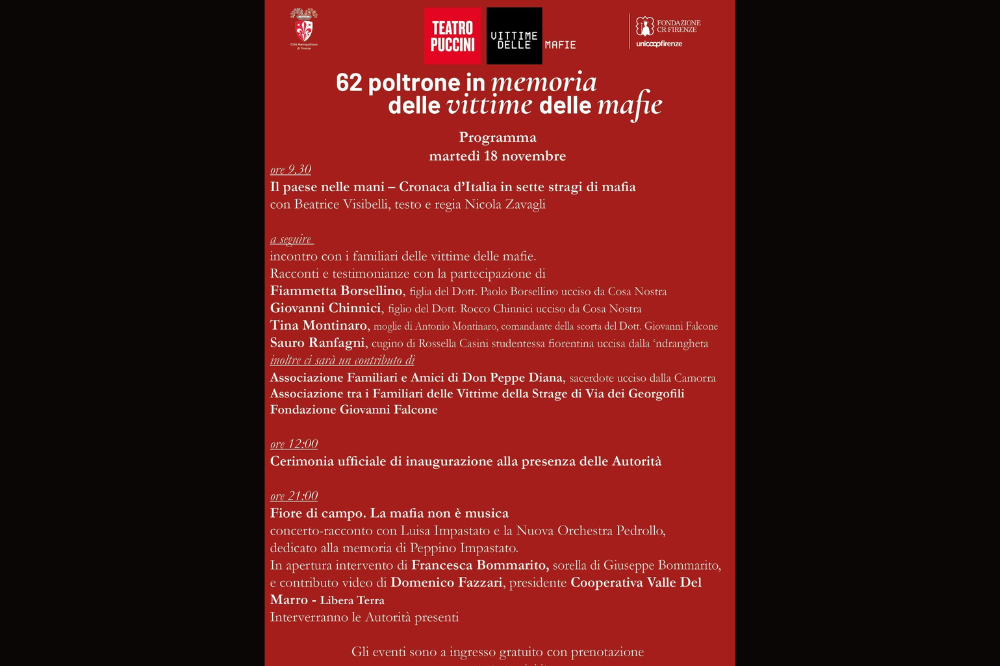 • 62 poltrone in memoria delle vittime delle mafie