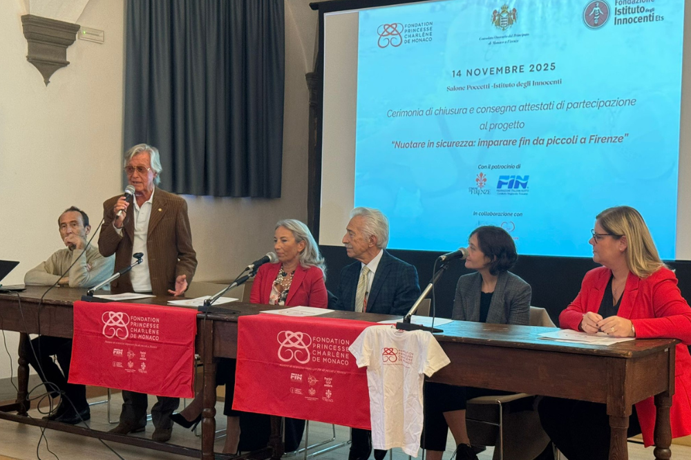 Con la cerimonia di consegna degli attestati presso la Sala Poccetti dell’Istituto degli Innocenti, da parte della padrona di casa Maria Grazia Giuffrida, del Console Onorario del Principato di Monaco a Firenze, Alessandro Giusti, il Presidente della ONLUS RARINI PER AMORE, Roberto Bresci Presidente della FIN Toscana e Madame Christelle Revel, Secondo Segretario dell'Ambasciata di Monaco in Italia, termina ufficialmente il progetto a sfondo benefico per bambini e famiglie svantaggiate “Nuotare in sicurezza: imparare fin da piccoli a Firenze”, sostenuto finanziariamente dalla Fondazione Principessa Charlène di Monaco, promosso dal Consolato del Principato di Monaco a Firenze e organizzato dalla ONLUS Rarini per Amore e dalla Fondazione Istituto degli Innocenti ETS, con il patrocinio del Comune di Firenze e della Federazione Italiana Nuoto – Comitato Regionale Toscano.