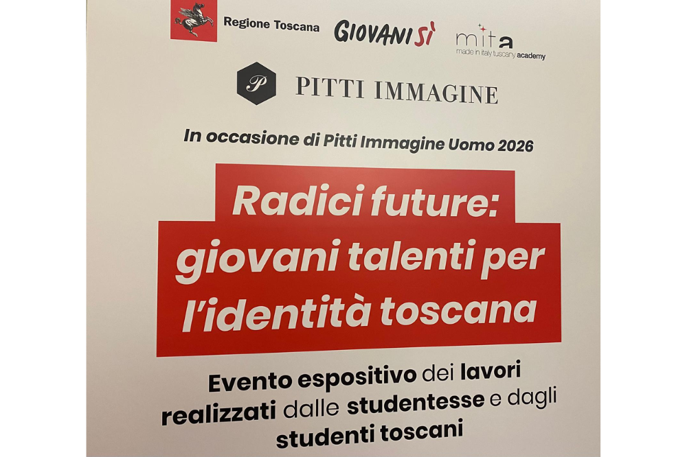 Un evento creato dai giovani per i giovani e promosso all'interno del calendario di Pitti Immagine, con Mita Academy come partner del progetto. Nella settimana dedicata alla moda, la sala Pegaso di Palazzo Strozzi Sacrati diventa spazio espositivo con "Radici future: Giovani talenti per l'identità toscana", il progetto promosso dalla Regione nell'ambito di Giovanisi per valorizzare la creatività dei giovani in moda e design.
