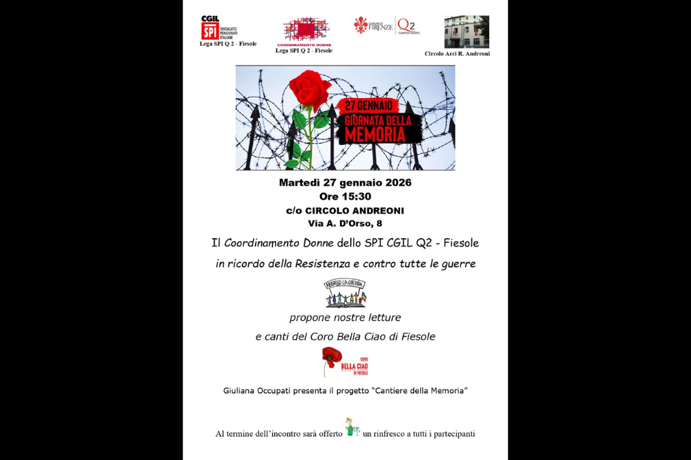 In occasione della Giornata della memoria il Coordinamento Donne dello Spi Cgil organizza una giornata di iniziative.