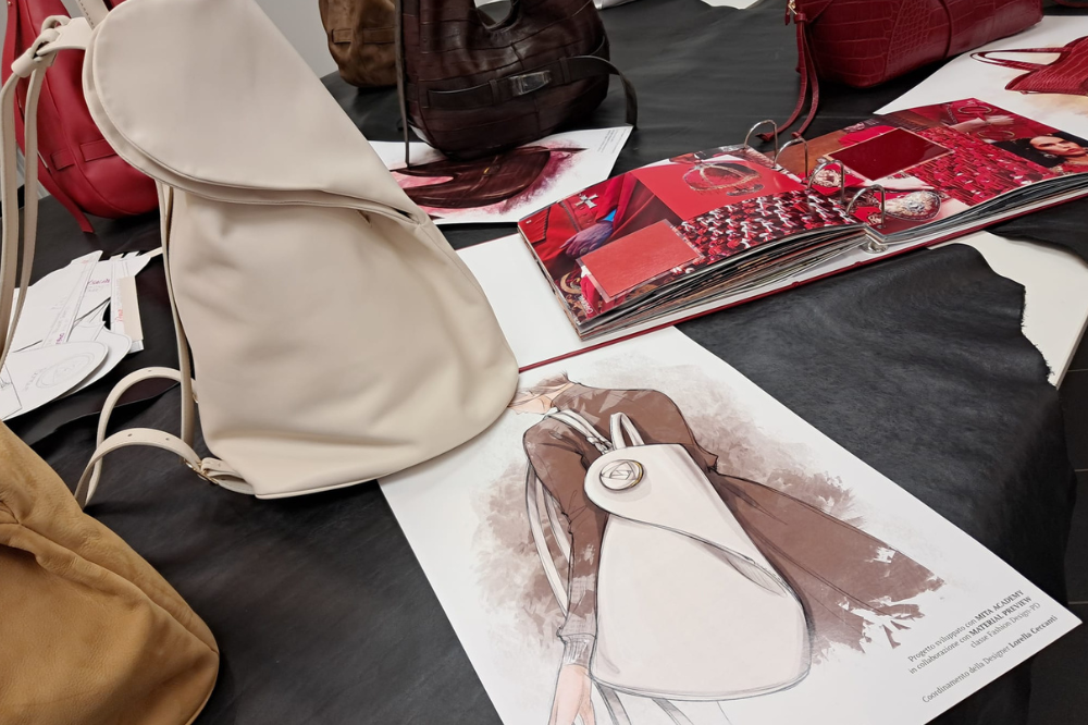 “Abbiamo realizzato questo progetto in collaborazione con MITA Academy Material Preview – ha detto proprio Lorella Ceccanti, Designer e Docente – dove ogni sei mesi vengono date le nuove tendenze. Questa che stiamo presentando è la tendenza Primavera/Estate 2027, per la quale i ragazzi hanno lavorato tanto, concentrandosi (appunto) sulle tendenze: hanno proposto tanti disegni molto impegnativi, poi io ho fatto una selezione e ho scelto un disegno per ogni tendenza. Dopo il disegno, ho creato il cartamodello, poi il prototipo che abbiamo girato alle mani esperte del maestro Filippo Migliacci, che ha realizzato delle bellissime borse in pelle. Vorrei sottolineare l’esperimento che abbiamo fatto con la classe del Fashion Designer, dove scuola e industria hanno lavorato in sinergia. Un progetto importantissimo per i ragazzi – ha concluso – che così hanno la possibilità di rendersi conto cosa significa creare una collezione di moda, perché talvolta si può pensare che ci sia solo la parte effimera del designer, ma dietro c’è una grande preparazione tecnica. Per un disegnatore è importante conoscere tutti i vari tipi di processi”.