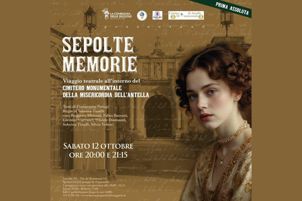 Sabato 12 ottobre 2024, la Compagnia delle Seggiole ritorna, a grande richiesta, con una replica straordinaria di Sepolte Memorie presso il Cimitero Monumentale della Venerabile Confraternita di Misericordia di Santa Maria all’Antella. Il pubblico avrà nuovamente la possibilità di partecipare a un affascinante viaggio teatrale che esplora le vite di tre generazioni, legate da un segreto familiare capace di attraversare i decenni.