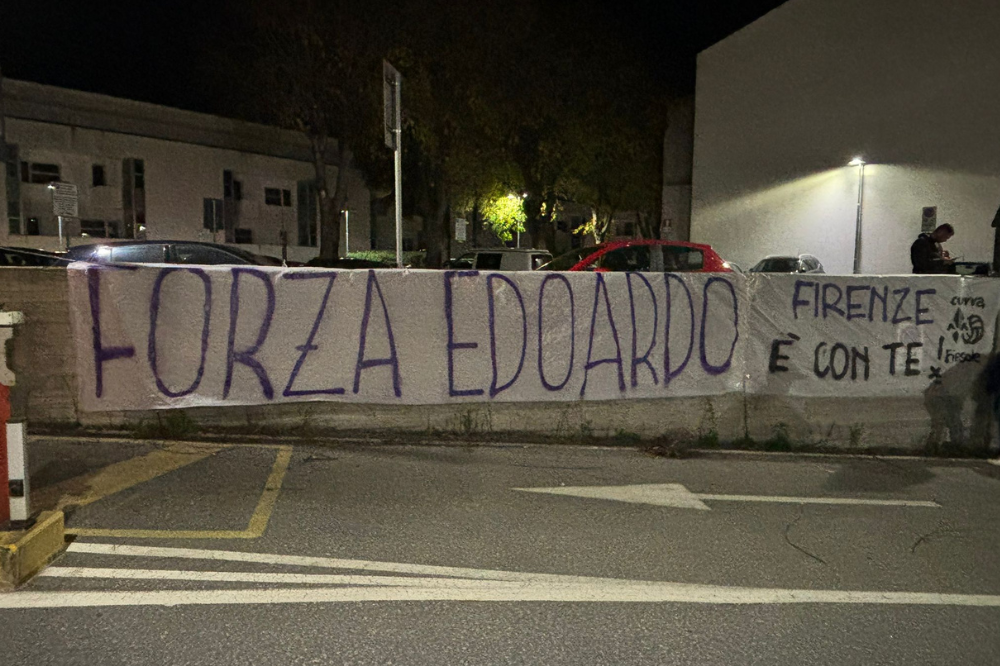 “Forza Edo, Firenze è con te”. Così recitava lo striscione della Curva Fiesole, esposto ieri fuori dall’ospedale di Careggi. Ora, lo striscione è stato rimosso e portato direttamente nella stanza di Edoardo Bove, come gesto di affetto e solidarietà nei confronti del centrocampista della Fiorentina.