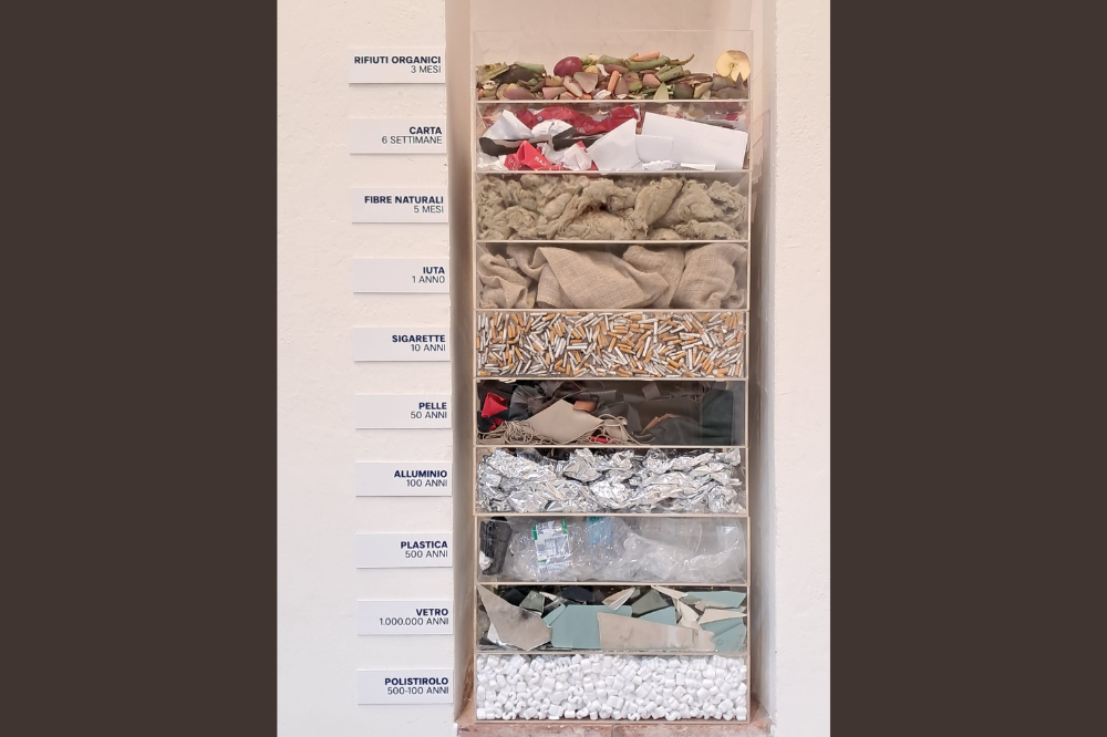 Il percorso espositivo affronta quattro temi centrali della sostenibilità: risparmio energetico, gestione dei rifiuti, riciclo e risorse idriche, articolandosi in dieci sezioni che mettono in relazione individuo, comunità e ambiente, evidenziando come le azioni quotidiane possano assumere un significato collettivo e trasformativo. Questo con l’obiettivo di sensibilizzare i cittadini attraverso la forza della comunicazione visiva.