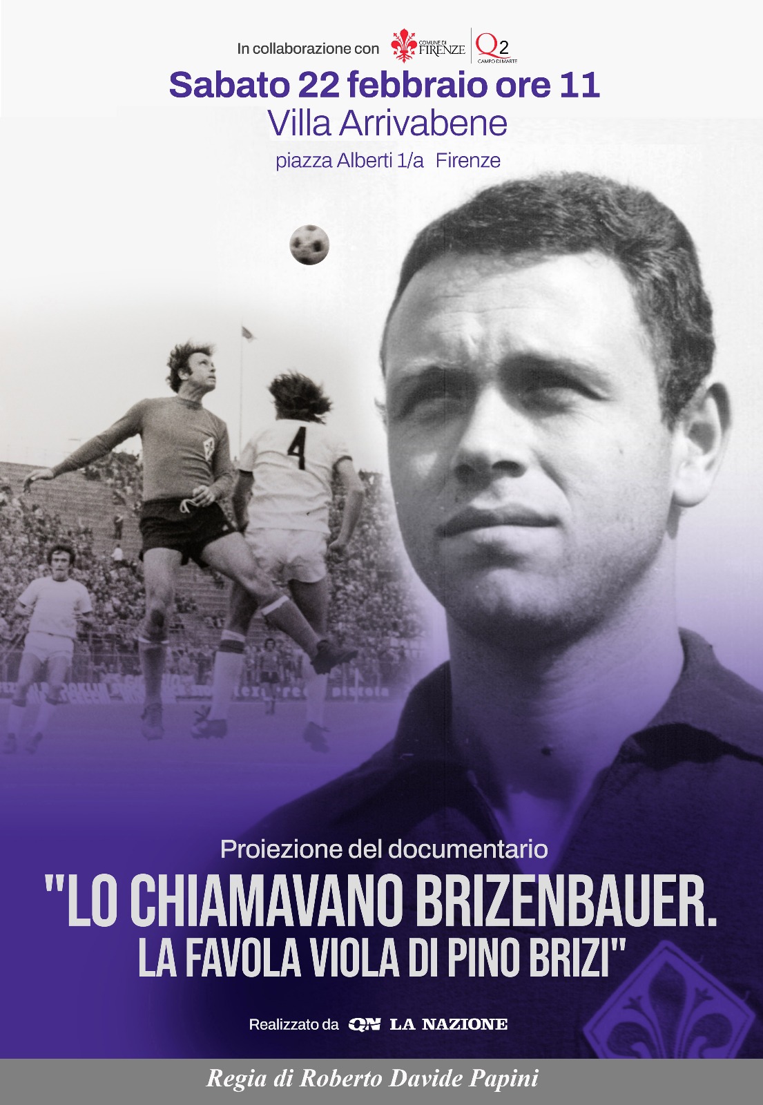 Sabato 22 febbraio alle ore 11.00, nella Sala Libero Beghi in Villa Arrivabene, si terrà la proiezione del documentario "Lo chiamavano Brizenbauer. La favola viola di Pino Brizi", realizzato da QN La Nazione per ricordare l'importanza della figura del grande campione. L'evento è a ingresso libero e gratuito, fino ad esaurimento posti.