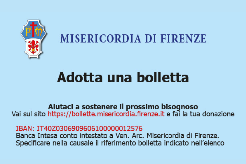 Anche per Natale 2024 la Misericordia di Firenze ha deciso di scendere in campo per aiutare le famiglie in difficoltà rinnovando il progetto “Adotta una bolletta”, lanciato due anni fa con l’obiettivo di raccogliere donazioni anonime per pagare le bollette delle utenze delle famiglie bisognose.