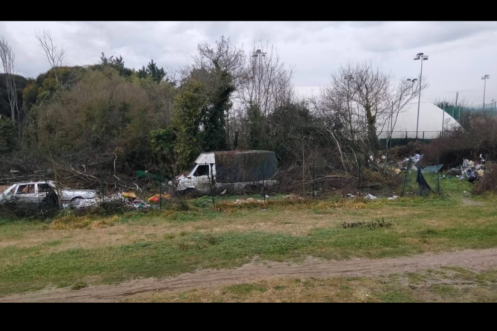 Le immagini scattate in questi giorni mostrano una situazione desolante. Cumuli di rifiuti di ogni genere – plastica, materassi, vestiti, elettrodomestici, resti di baracche – disseminati tra gli alberi e lungo i sentieri. Recinzioni divelte, teli strappati, fango e tracce evidenti di insediamenti improvvisati. In mezzo alla vegetazione spuntano carcasse di veicoli abbandonati e materiali bruciati, segni ancora visibili dell’incendio che aveva reso necessario l’intervento delle autorità.